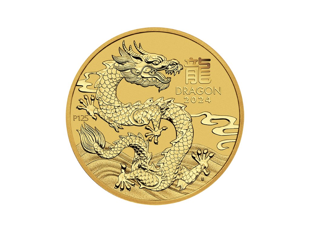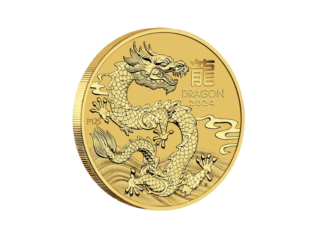 Zlatá mince Lunar III – Rok Draka 2024 pochází z renomované australské mincovny The Perth Mint a je pátou mincí z dvanáctidílné Lunární série III, inspirované čínským zvěrokruhem.