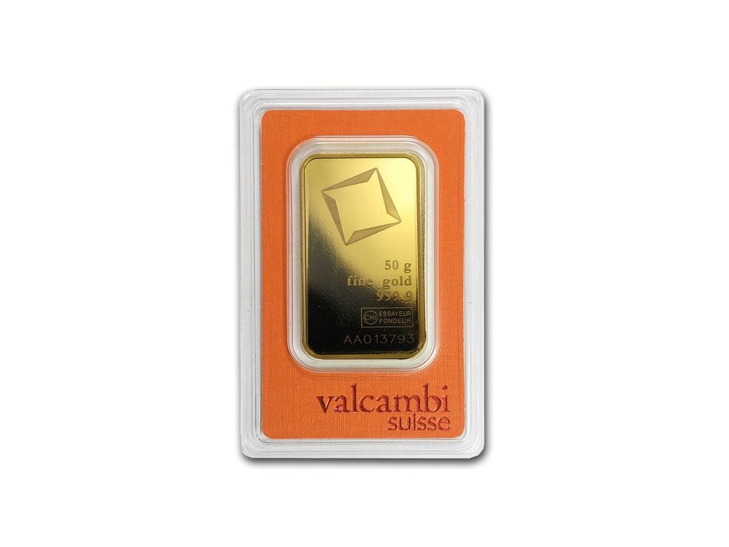 Zlatý slitek 50 g Valcambi